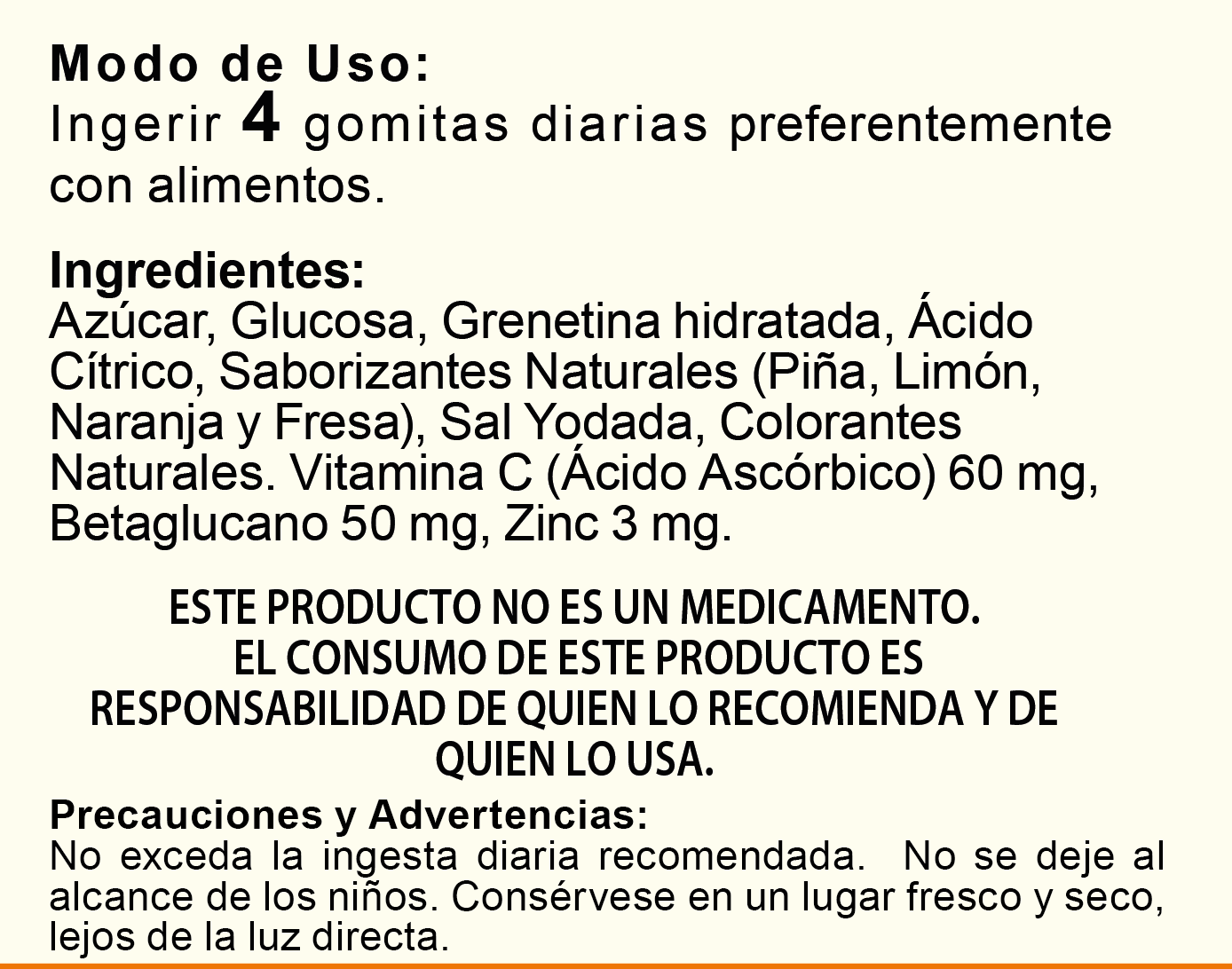 Ingerir 4 gomitas diarias, preferentemente con alimentos.